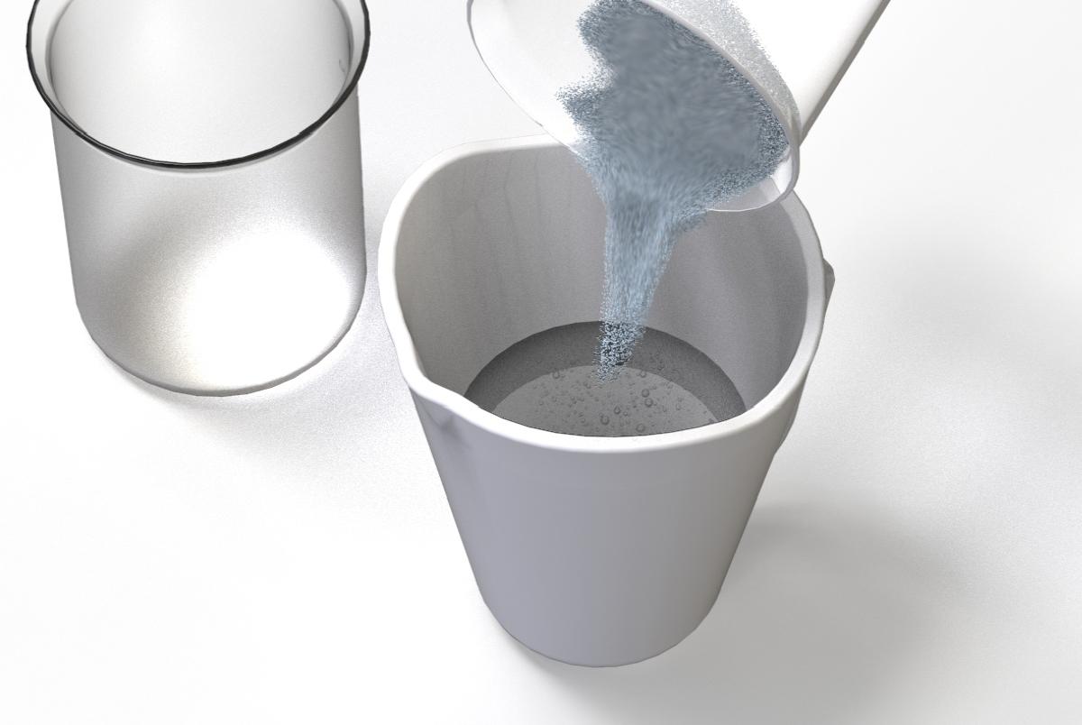 Für eine klumpenfreie Mischung geben Sie das Alginat portionsweise in das Wasser.