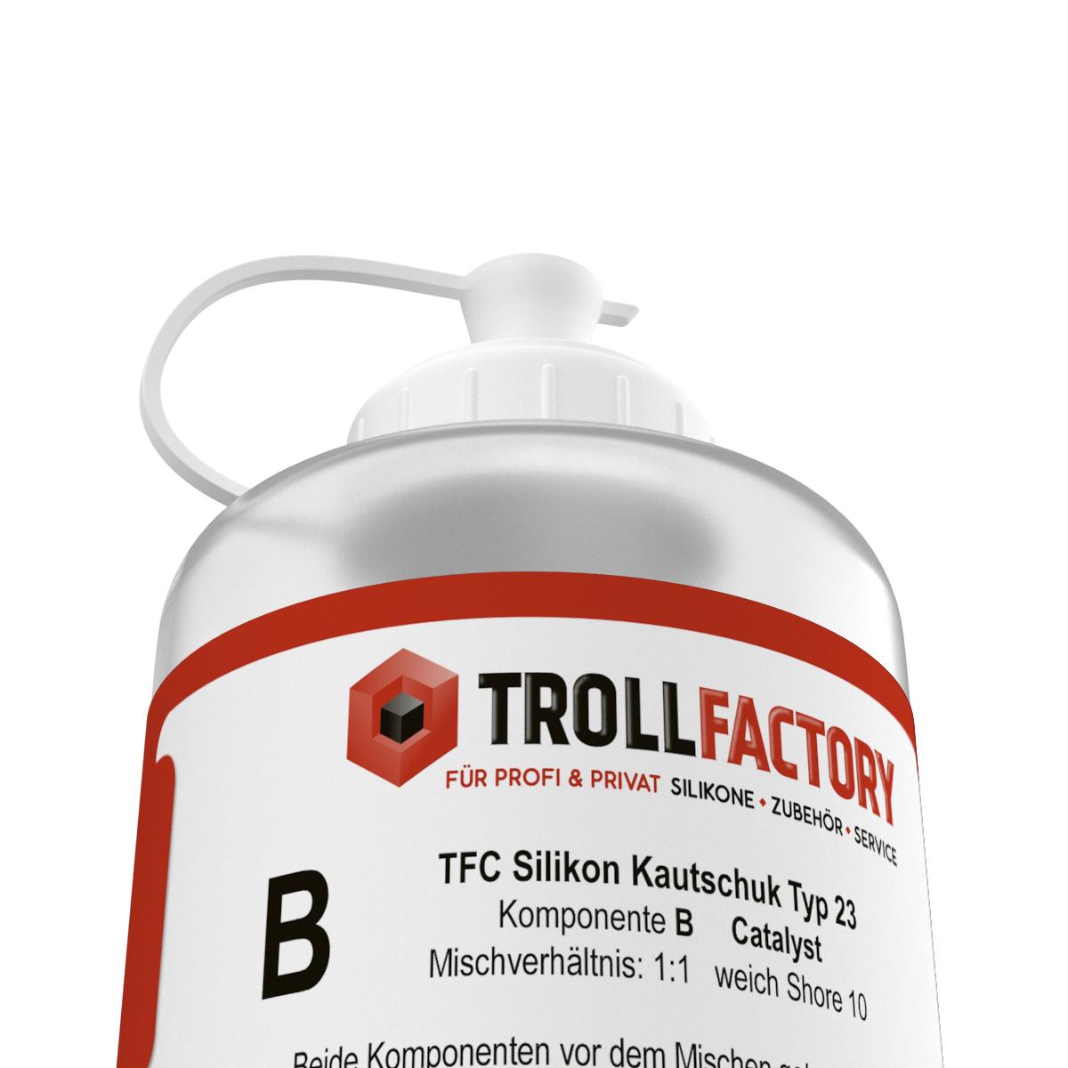 TFC Silikon Kautschuk Typ 23 beinhaltet neben den beiden Silikon Kautschuk Komponenten Base und Catalyst eine dritte Komponente, den sog. Deadner.