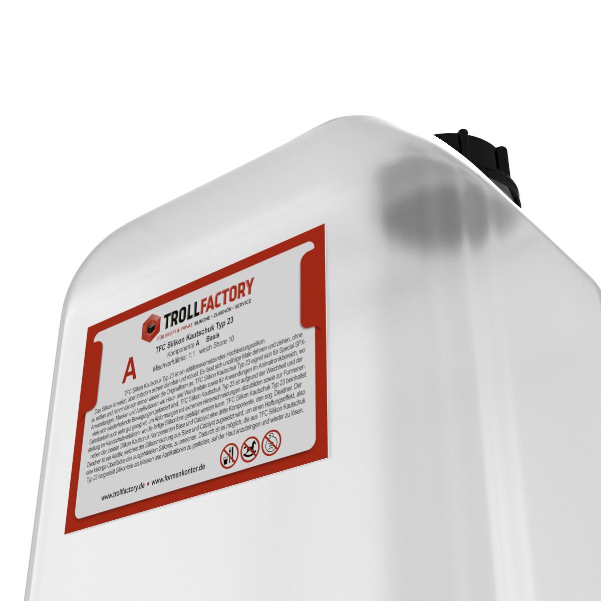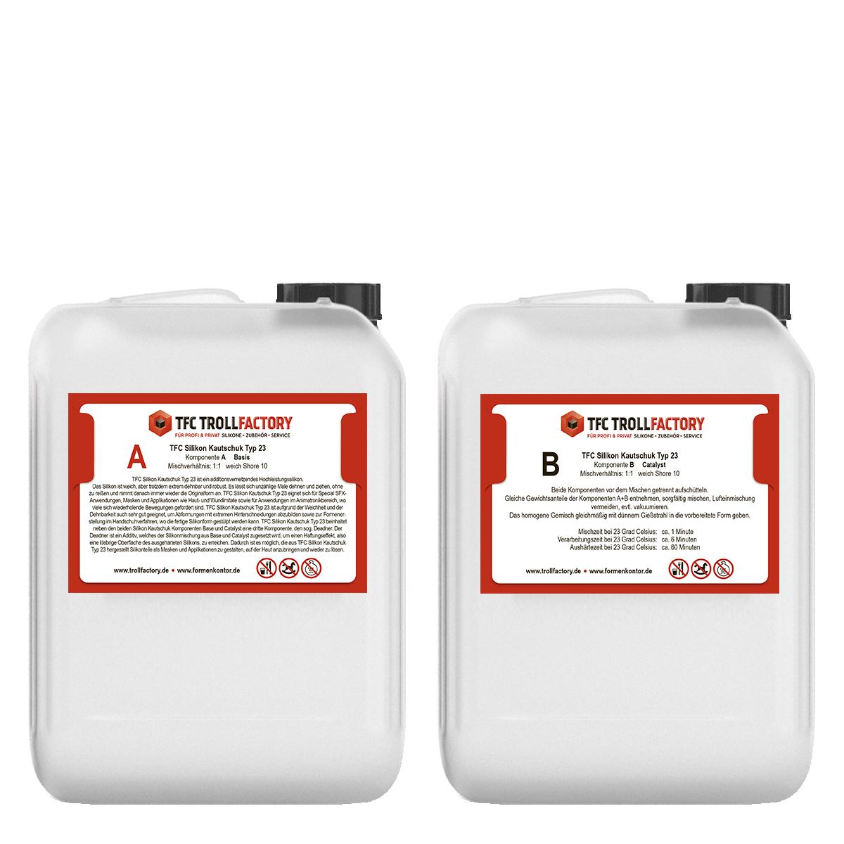 TFC Silikon Kautschuk Typ 23 beinhaltet neben den beiden Silikon Kautschuk Komponenten Base und Catalyst eine dritte Komponente, den sog. Deadner.