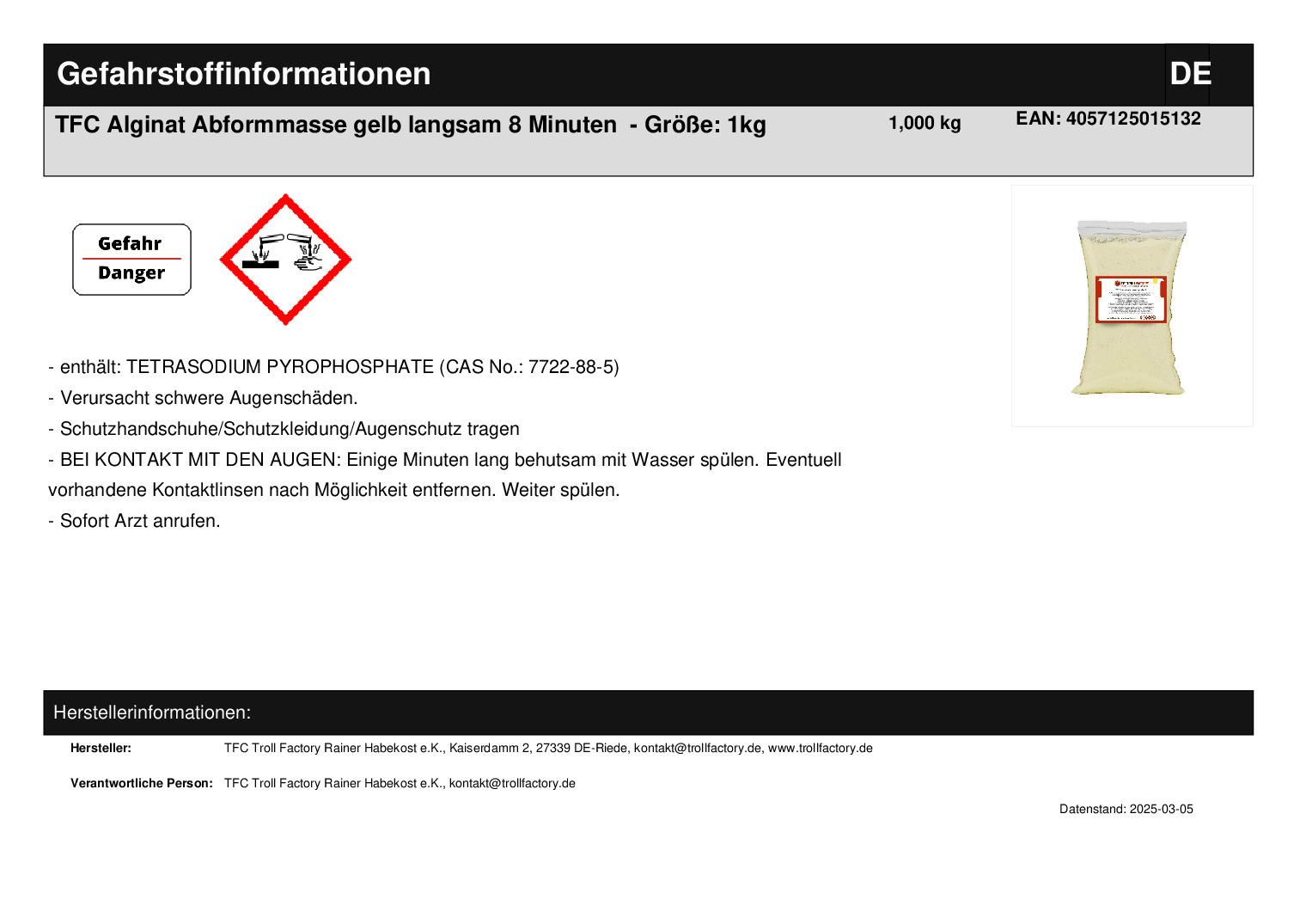 Produktinformationen "TFC Alginat Abformmasse gelb langsam 8 Minuten "