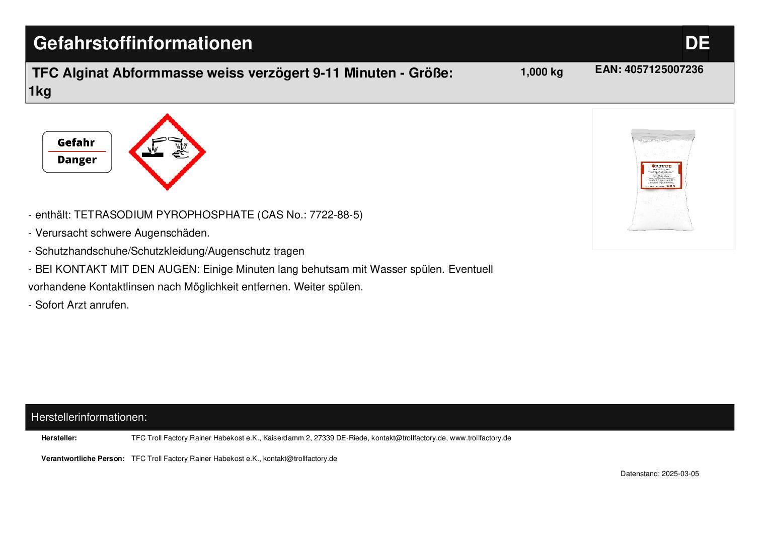 Produktinformationen "TFC Alginat Abformmasse weiss verzögert 9-11 Minuten"