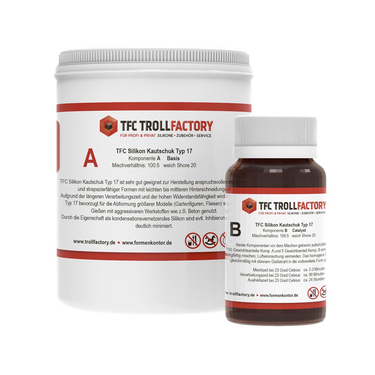 TFC Silikon Kautschuk Typ 17 ist sehr gut geeignet zur Herstellung anspruchsvoller,elastischer und strapazierfähiger Formen mit ausgeprägten Hinterschneidungen.