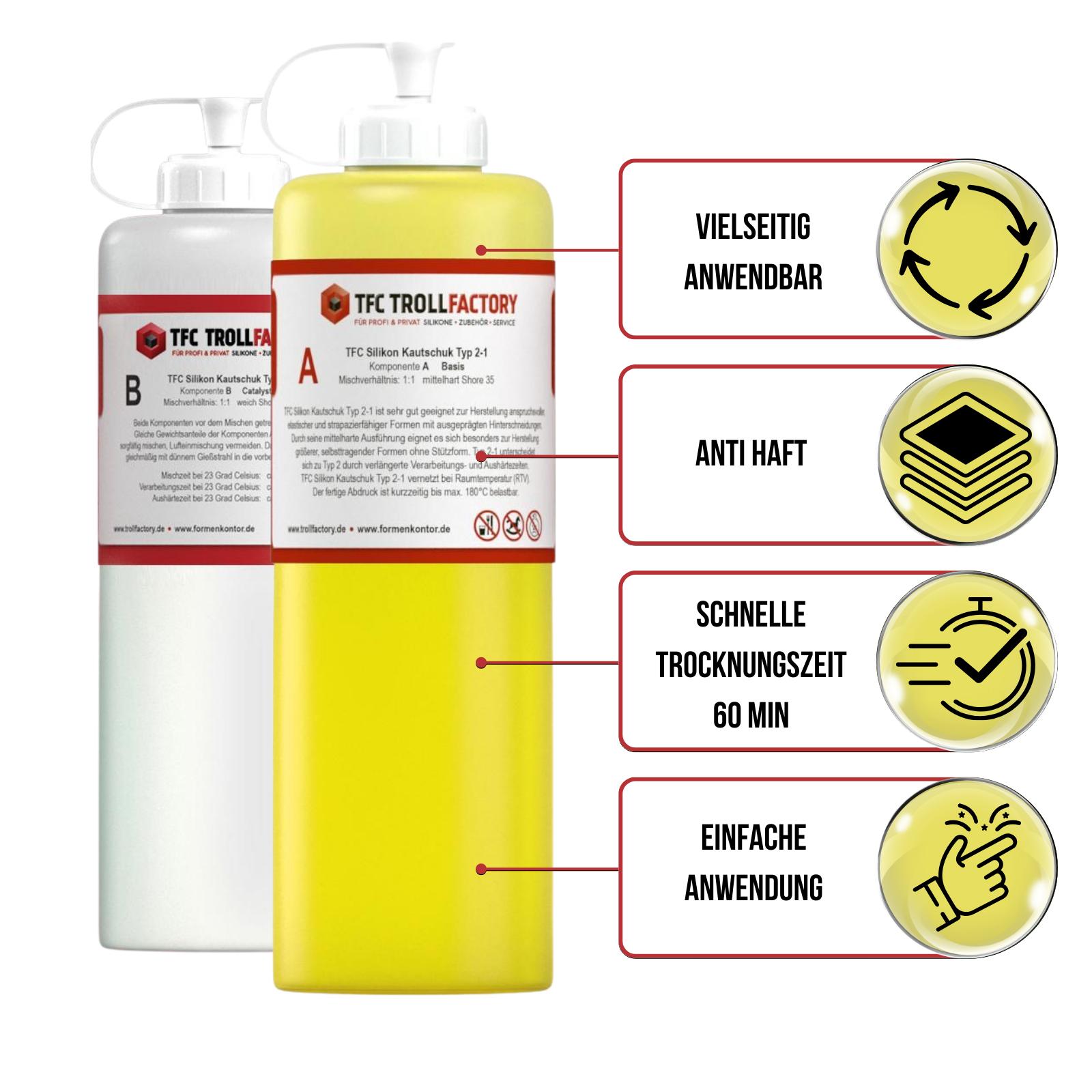 TFC Silikon Kautschuk Typ 2-1 Abformsilikon mittelhart gelb 1:1 RTV NV