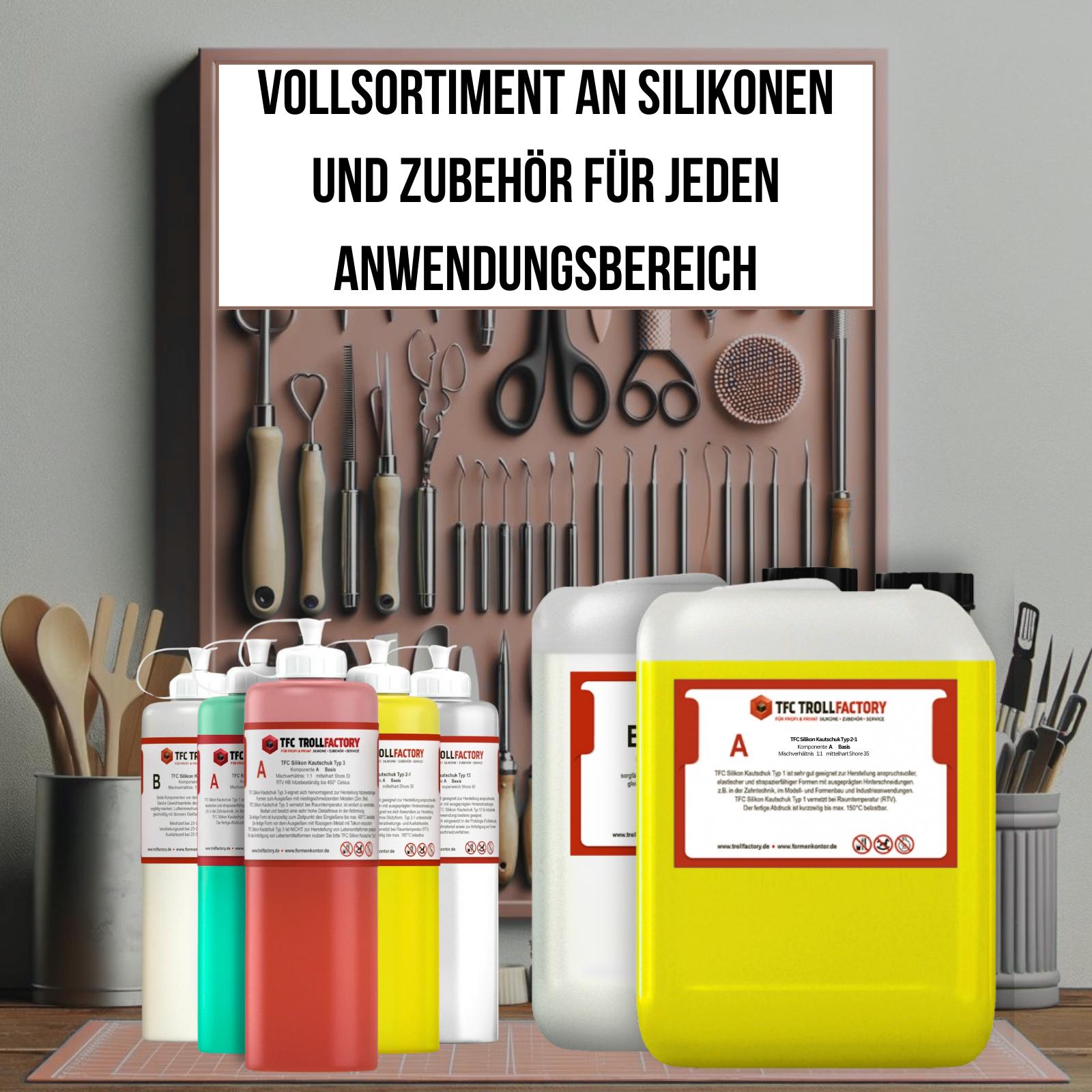 TFC Silikon Kautschuk Typ 2-1 ist sehr gut geeignet zur Herstellung anspruchsvoller, elastischer und strapazierfähiger Formen mit Hinterschneidungen.
