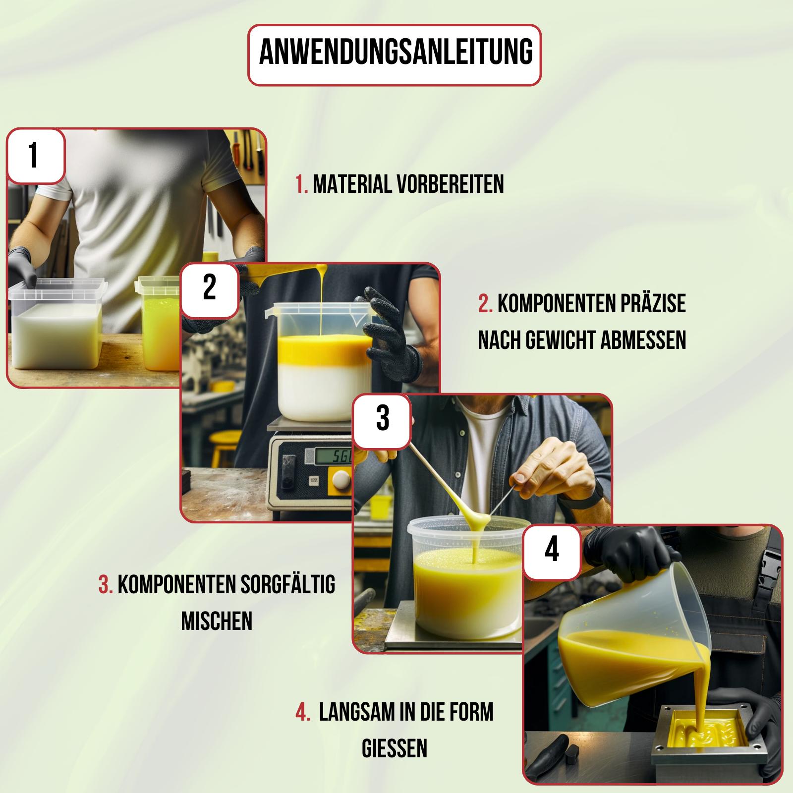 Hierbei sollten Sie vor dem Eingiessen die Form mit einem Trennmittel vorbehandeln,