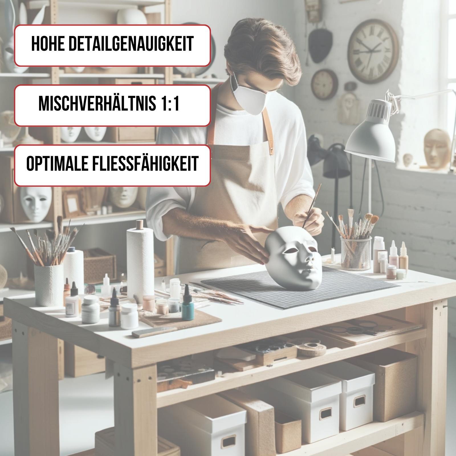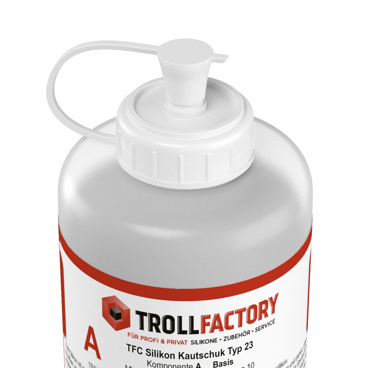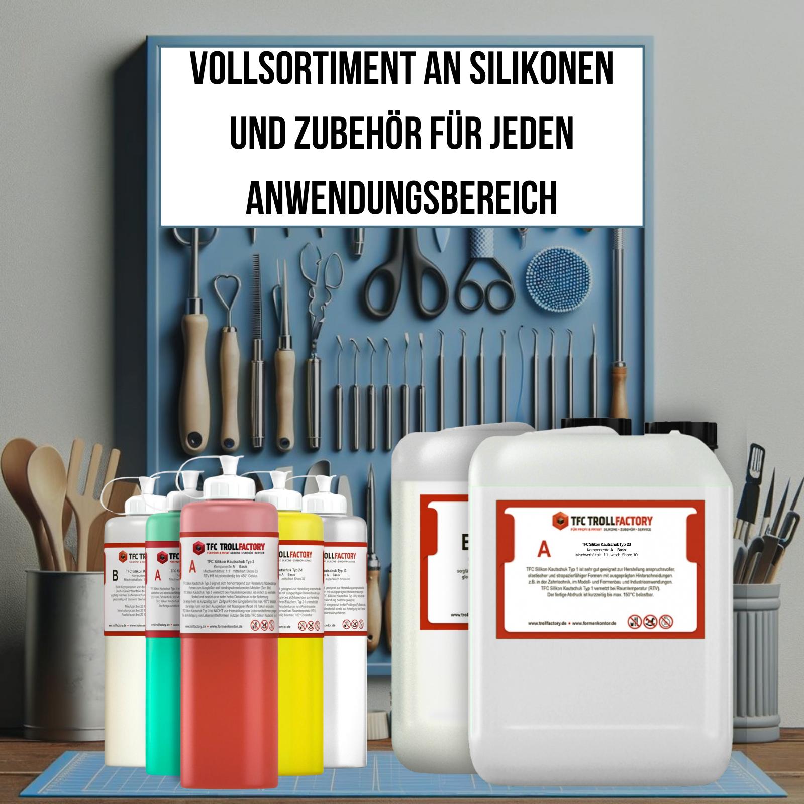 TFC Silikon Kautschuk Typ 23 beinhaltet neben den beiden Silikon Kautschuk Komponenten Base und Catalyst eine dritte Komponente, den sog. Deadner.