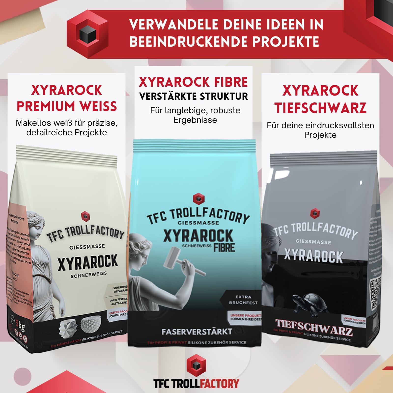 Entdecken Sie die Kunst des Gießens mit TFC Xyrarock, Ihrer ersten Wahl für kreative Projekte. Unsere einzigartige Gießmasse bietet nicht nur eine außergewöhnliche Weiße und Härte, sondern auch eine hohe Detailtreue, die jedes Kunstwerk zum Strahlen bringt.